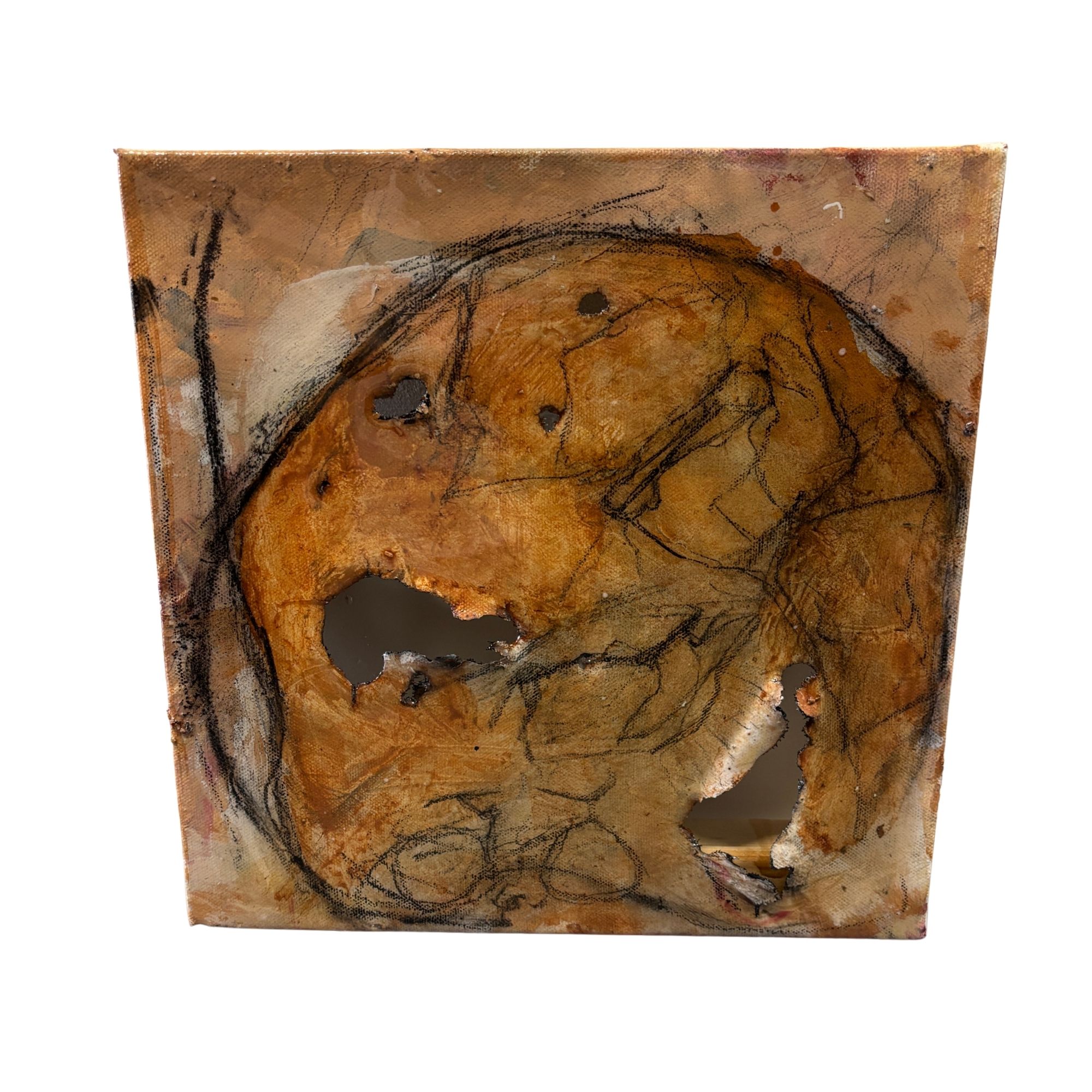 William grew up on his family's Appalachian Mountain farm, but at 16, relocated to Florida to attend a pre-professional ballet program where he received intensive training to pursue a career in the arts. An unexpected hip injury caused William to pivot his creative intensions towards his two other interests: painting and cooking.Moving to Charlotte, NC, William began rising swiftly through the culinary ranks to executive chef status, eventually directing some of the city’s most innovative culinary programs. Now focused on painting, William considers his artwork the byproduct of dual musings: his fascination with the art and lives of prehistoric humans, and the whimsical nature of his young children.By burning canvas over an open-pit fire and marrying natural materials such as local clay, ash, and native charcoal with more conventional mediums and mark making by his toddlers, these ideas have become a lived experience for him and the paintings he makes.